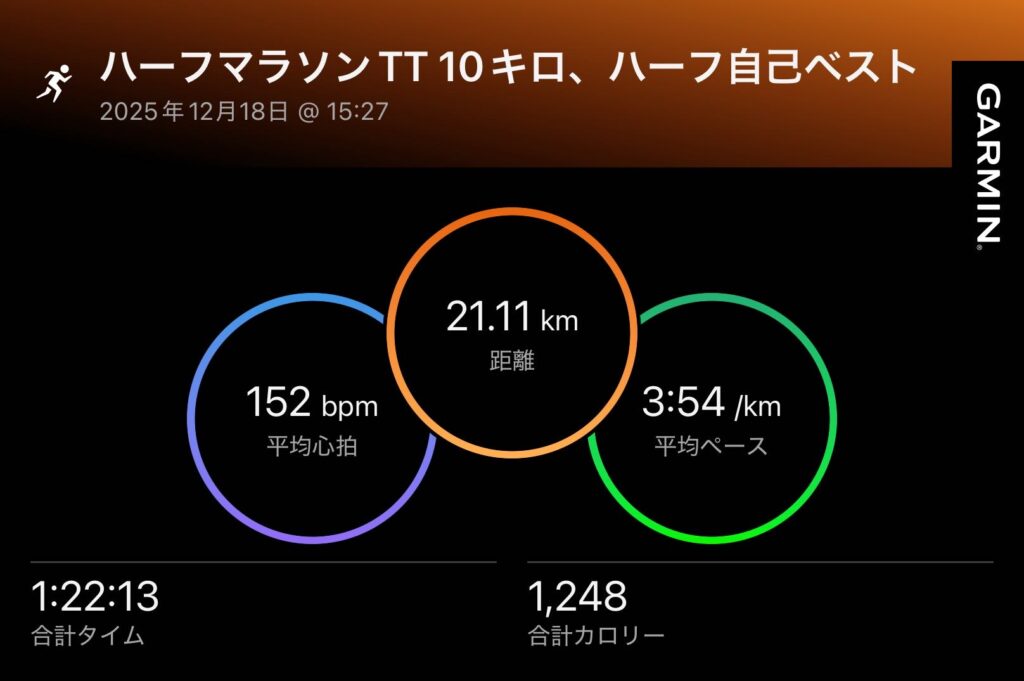 12月18日に実施したハーフマラソンTTでは、